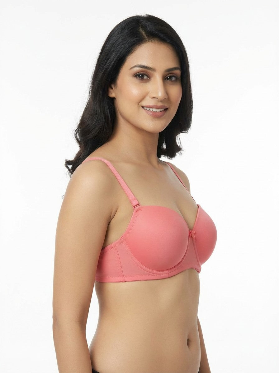 Zivame Padded Wired 3/4Th Coverage Multiway Bra offers a supportive and confidence-boosting fit with demi coverage and an underwired, padded design that enhances shape while remaining comfortable for regular wear. Crafted from cotton, it feels soft and breathable against the skin, making it suitable for extended daily use. The straight back and strapless, multiway-friendly styling combine with a secure hook-and-eye closure to provide versatile wear under a variety of outfits while keeping everything gently in place. Finished in a solid coral shade, this bra is designed to balance style and practicality, and with simple hand wash care, it remains a dependable part of your everyday lingerie collection.